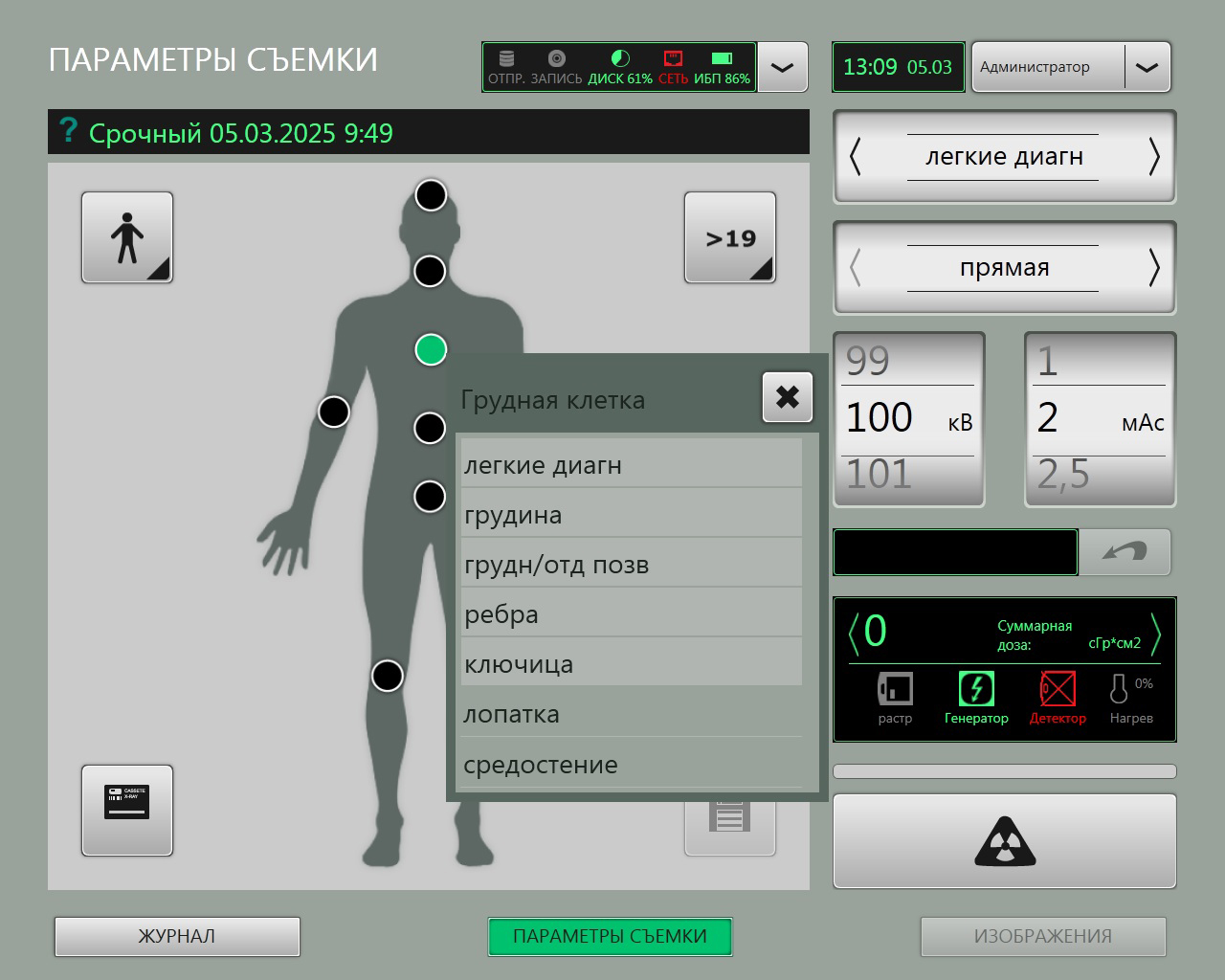 Встроенная рабочая станция оператора обеспечивает удобное управление аппаратом с помощью сенсорного дисплея, который имеет защиту от случайных нажатий. Широкие возможности программного обеспечения, а также интуитивно понятный русскоязычный интерфейс позволяют максимально упростить и облегчить работу рентгенолаборанта.